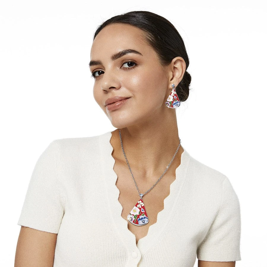 Blooming against a deep red background, our designer’s floral inspired by English wildflowers has been hand-painted in enamel by our artisans.
