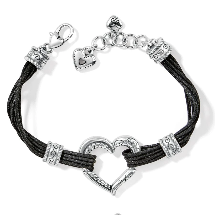 A bold sculptural heart is the centerpiece of this unmistakably Brighton bracelet flanked by supple cotton-corded strands on this comfortable-to-wear bracelet. The beauty of it is in the modern-at-heart shape and the artful scrolled details that give it elegance and grace.