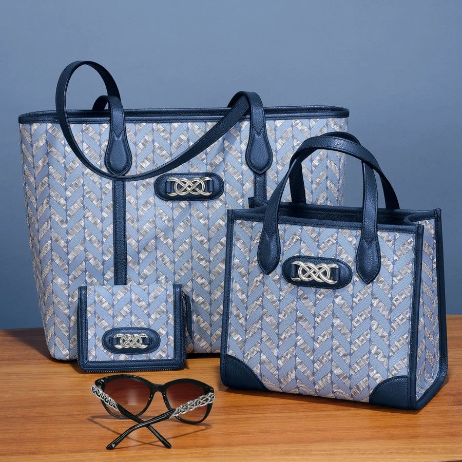 A stunning classic texture like the herringbone weave on this medium-sized wallet evokes refinement and longevity. It looks luxurious and also complements all the timeless Interlok jewelry.