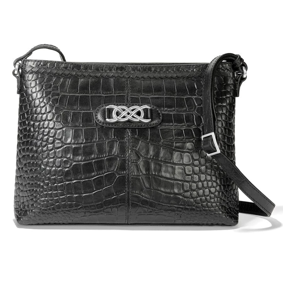 This medium size crossbody moves with ease from day to evening. Leather lace trim adds a crafted refined touch. Top zipper and large back pocket for phone and other essentials.