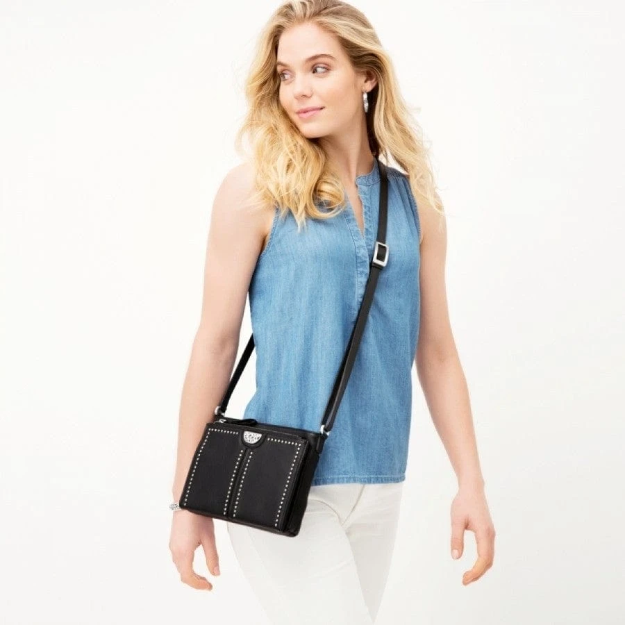 Everything in its place is this organizer’s motto, with a many-pocketed built-in wallet. A smooth ziptop close, along with a large zippered pocket on front, add security, while chic Pretty Tough motif adds style.